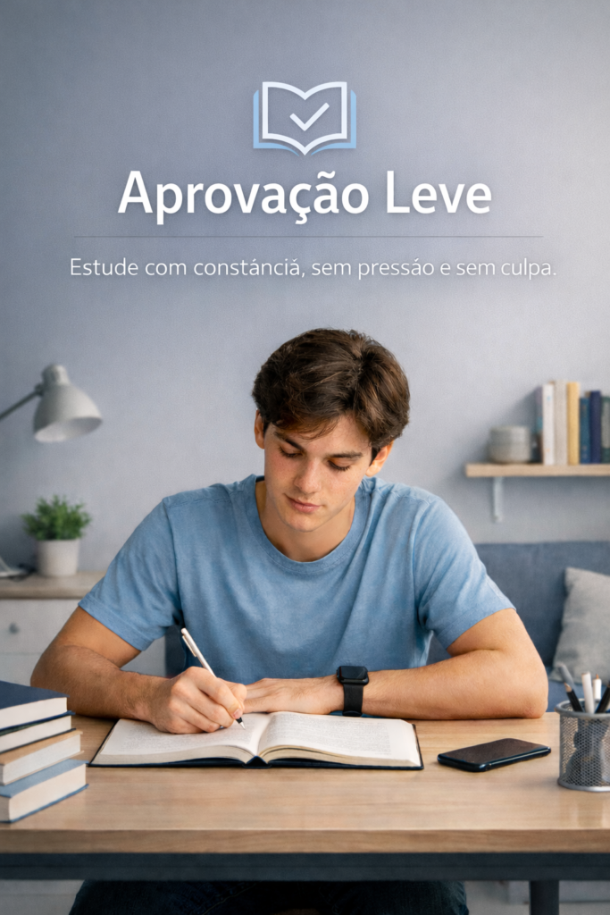 Adquira o Método Aprovação Leve e aprenda a estudar com constância, sem pressão e sem culpa.